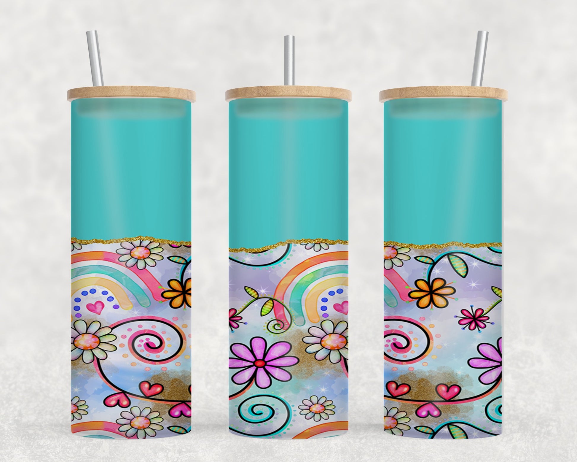 Flower Rainbow Blue-10575 - glass can
